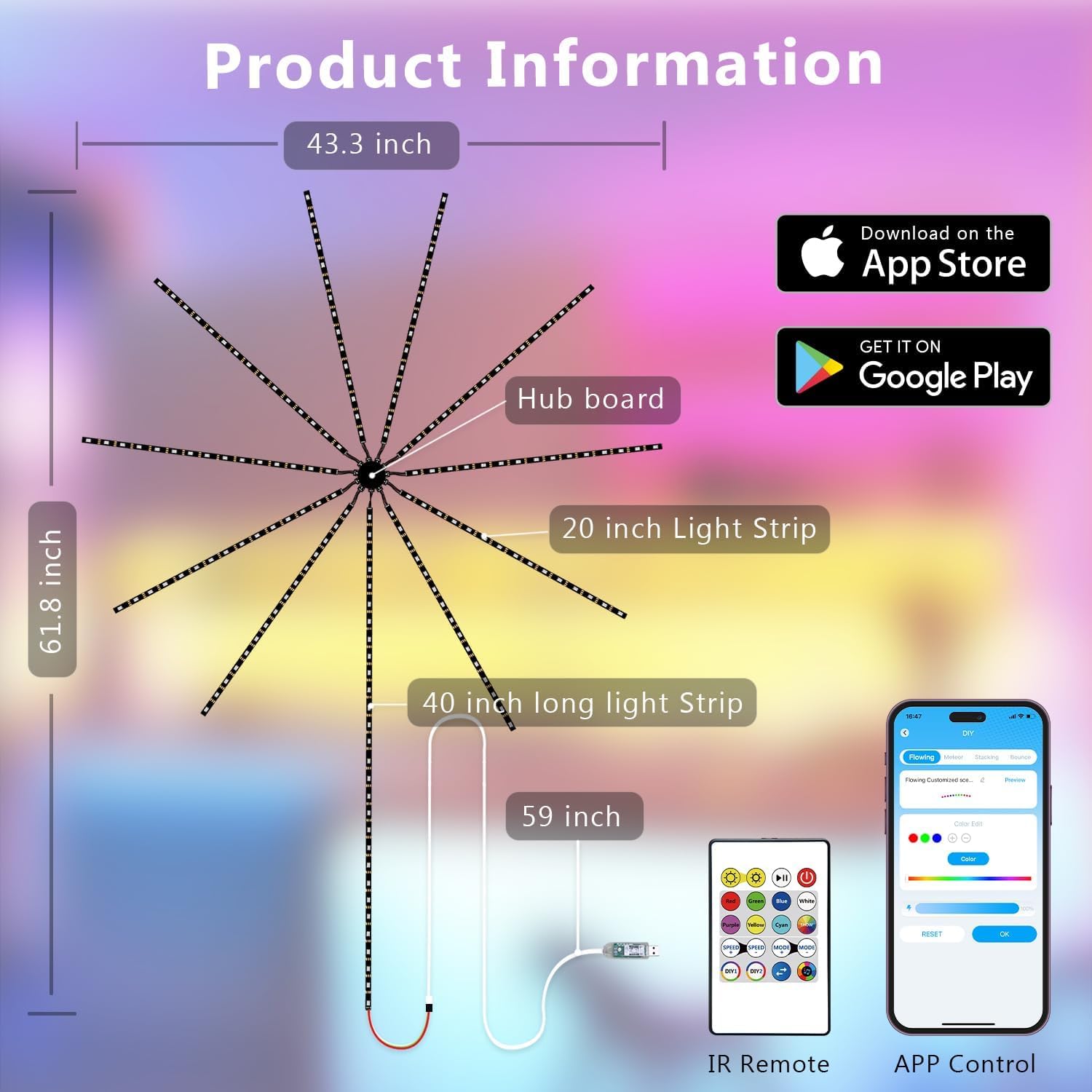 - 3 control methods: Adjust your lights via app, remote control, or a convenient USB controller box.